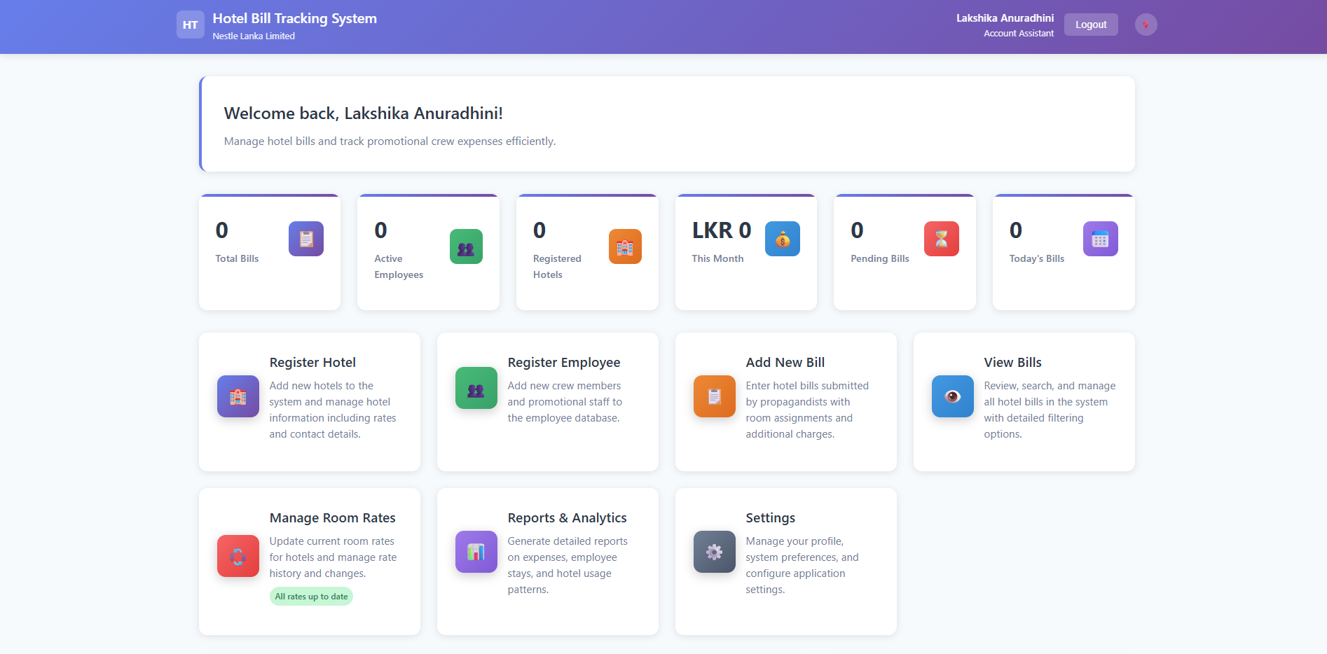 Corporate expense tracking application for NestlΓ© Lanka Limited using HTML, CSS, JavaScript, PHP, and MySQL with secure forms and automated reporting features.